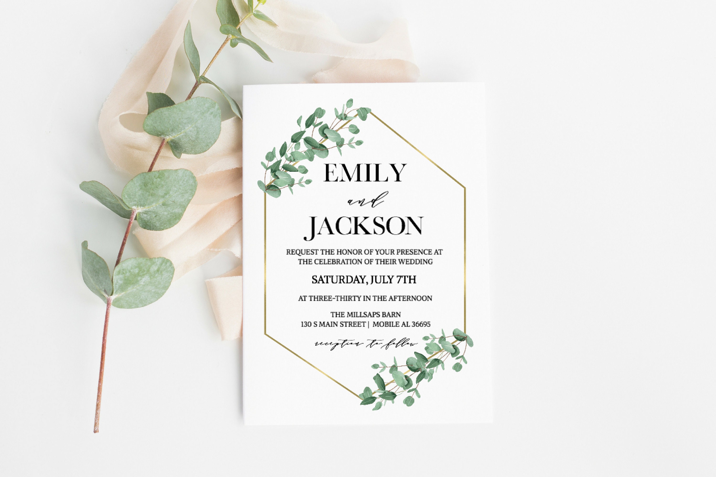Eucalyptus Geometric Wedding Invitation Eucalyptus Wedding Etsy Canada