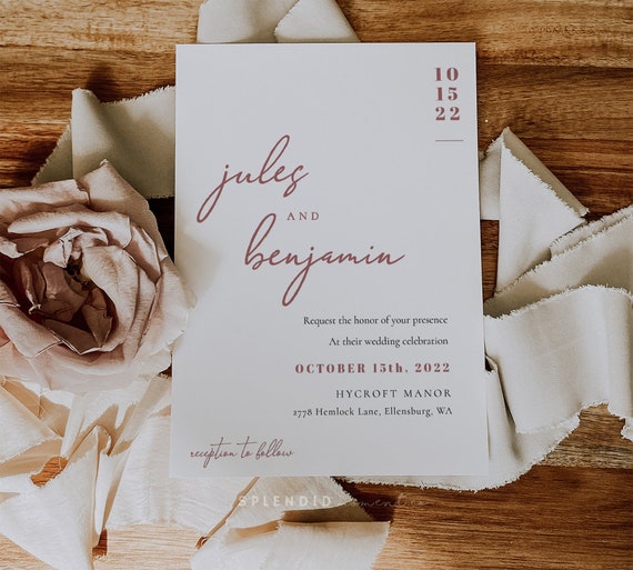 Modern Wedding Invitation Template Minimal Wedding Invitation Etsy